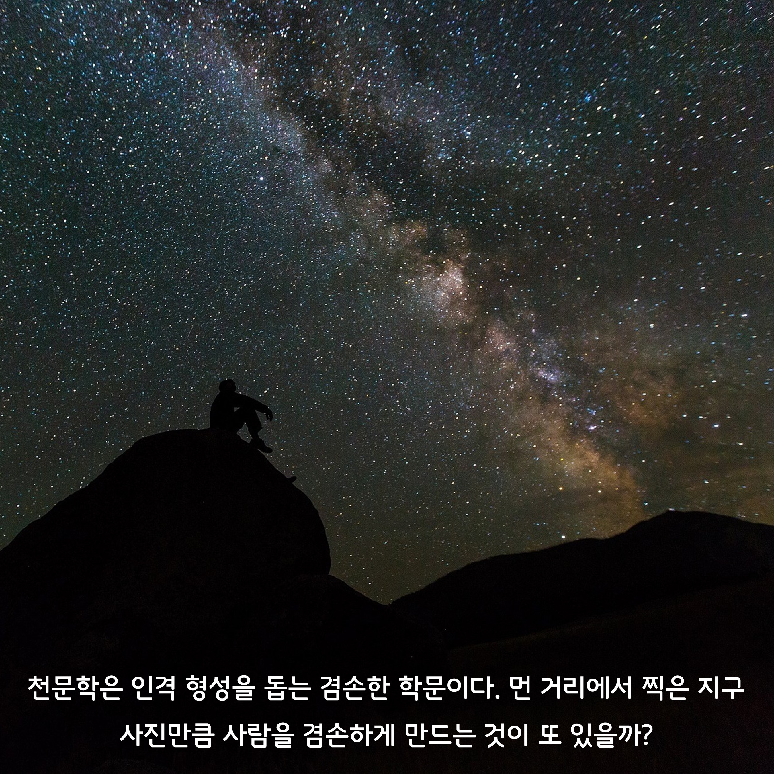 밤하늘의 오리온 (Orion)자리 베텔게우스 (Betelgeuse)를 생각해보자. 카시오페이아 (Cassiopeia) 자리에 위치한 작은 별빛, 안드로메다 은하를 보자. 생각만해도 많은 생각과 경이로운 감동을 안겨줄 준비가 되어있는가? 아직 모르겠다면 이 책을 꼭 한번 일독해보길 권한다.