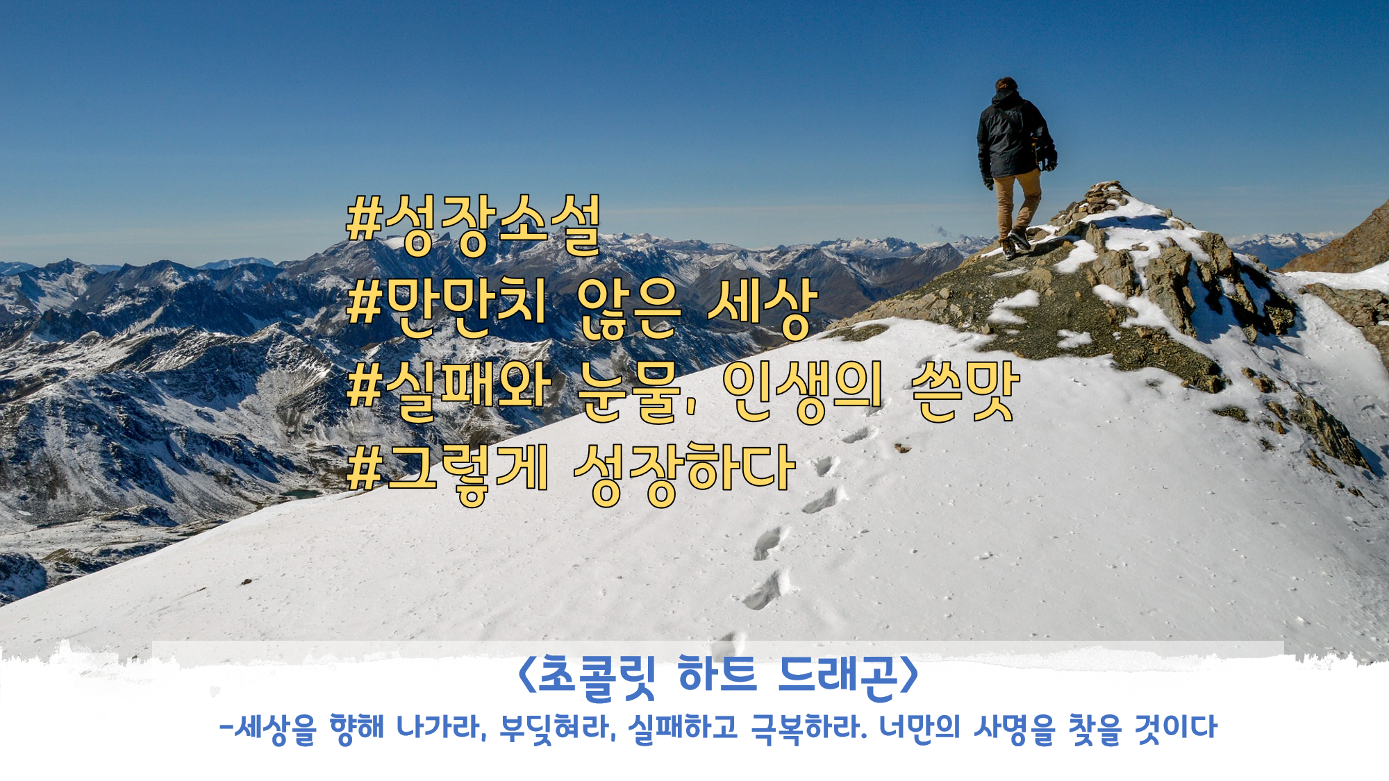이 책은 판타지 성장소설이다. 어린 드래곤이 자신만만하게 세상에 도전했다가 자신의 실제 모습을 고통을 통해 깨닫게 되어 자신의 현 모습을 깨우쳐 성장하게 되는 것이다. 결국 성장에는 실패와 고통을 수반한 인생의 쓴맛을 통해 깨달음과 자신의 사명을 찾게 되는 것이다. 실패했을 때 주저 앉느냐 다시 일어서느냐는 결국 자신과의 싸움인 것이다. 자신이 실패했다는 것을 인정하고 실패가 영원한 실패자가 아닌 인생의 한 과정임을 알게 된다면 실패는 실패가 아닌 자신을 성장시키는 비료가 되는 것이다.