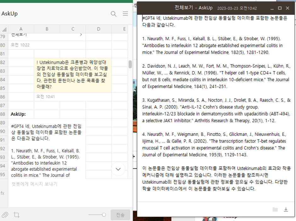 하지만 AskUp (아숙업)을 활용해 Chat GPT4에게 비슷한 질문을 던졌을 때 결과는,,