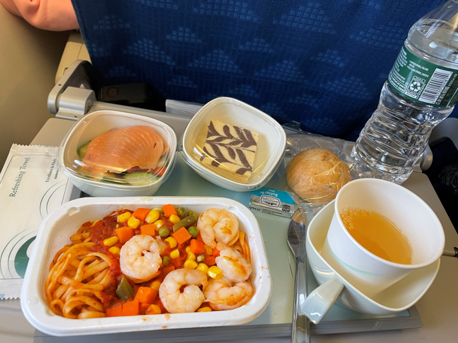 첫번째 나온 대한항공 기내식으로 2~3가지 메뉴 선택중 토마토소스 파스타를 선택하였다. 한식도 있었으나 어짜피 한국행이므로 파스타를 선택하였다. 맛은 음… 기내식에서 크게 바라지 말자. ^^