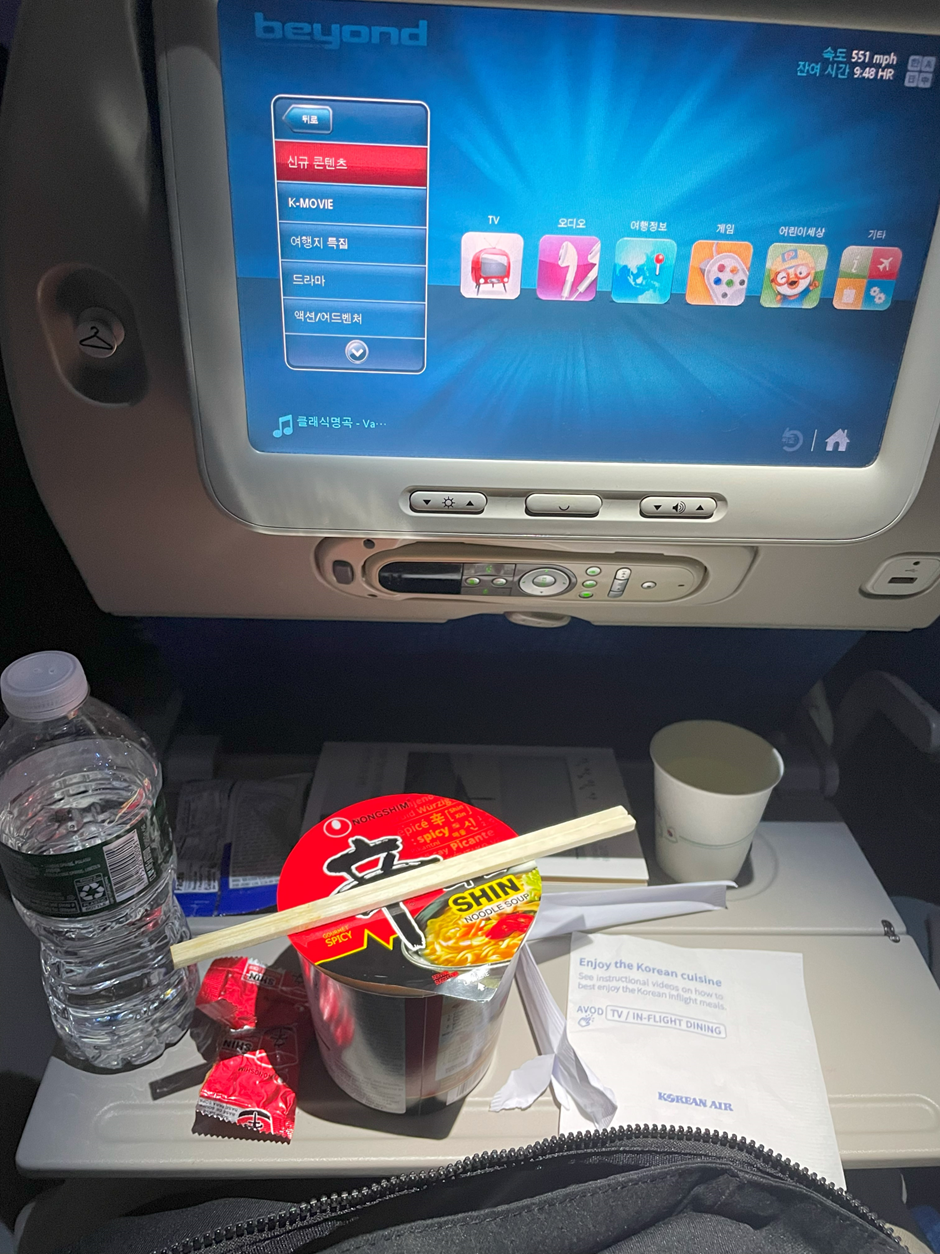4. 번외. 대한항공타고 JFK공항에서 한국으로 들어오기. 공항 요기거리, 대한항공 기내식, 오후비행기의 생각치 못한 시간변화와 비행기 창가 좌석의 의미.. 해 따라 가기. 밤이 없다.