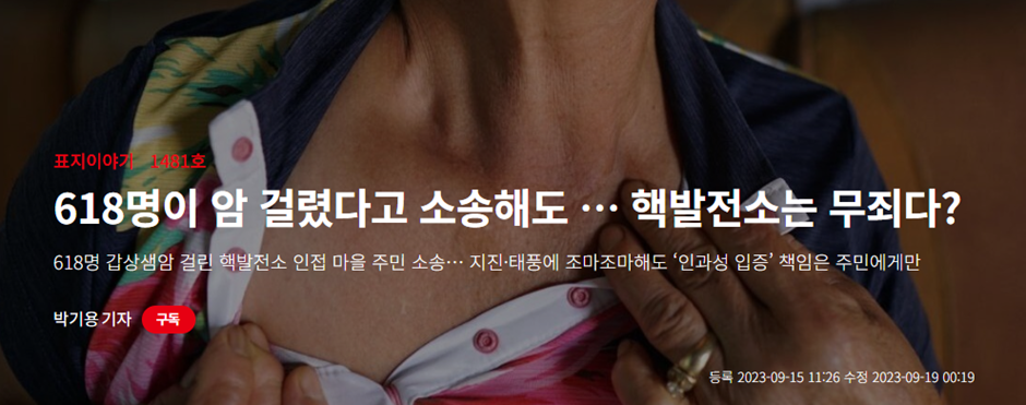 618명 갑상샘암 걸린 핵발전소 인접 마을 주민 소송… 지진·태풍에 조마조마해도 ‘인과성 입증’ 책임은 주민에게만
