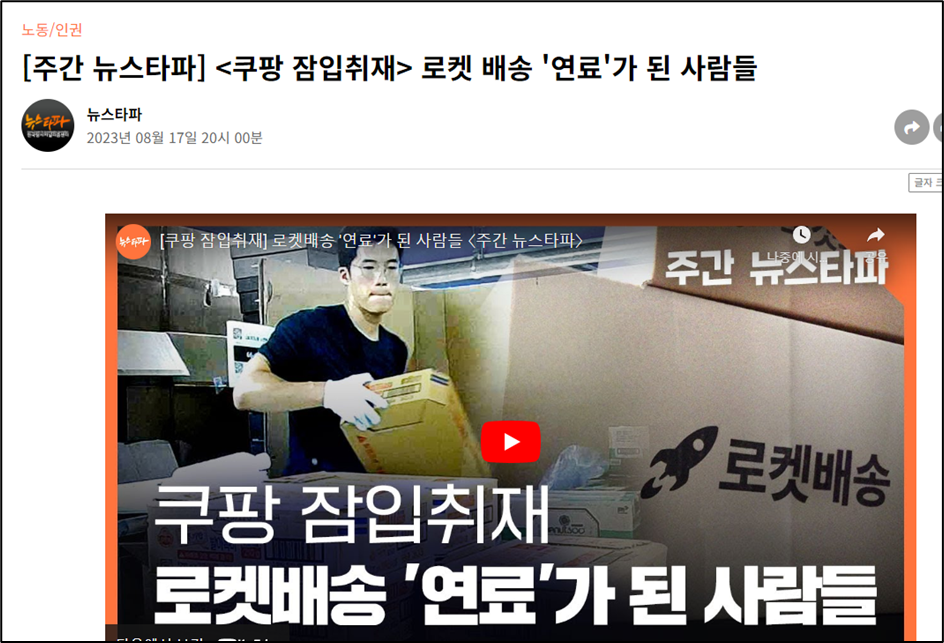 특히 최근 한 탐사보도 독립언론매체의 기자가 쿠팡 물류센터에 위장취업 취재가 결정적인데