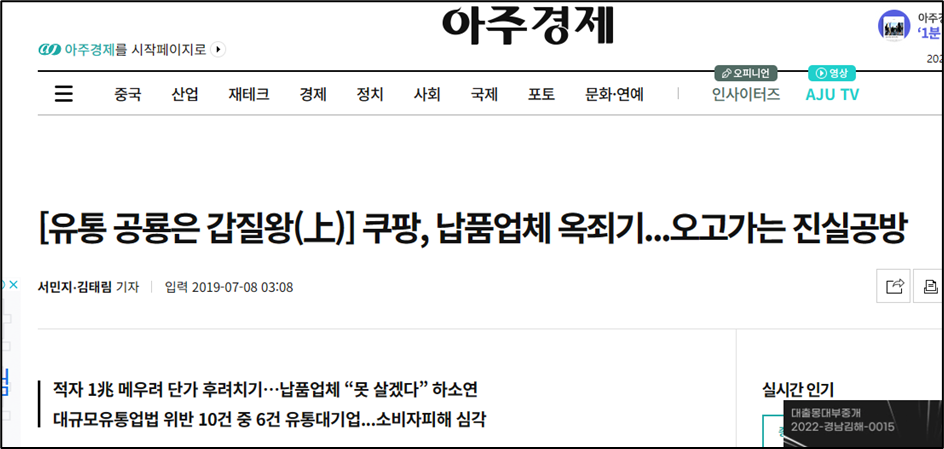 [유통 공룡은 갑질왕(上)] 쿠팡, 납품업체 옥죄기...오고가는 진실공방 | 아주경제 (ajunews.com)